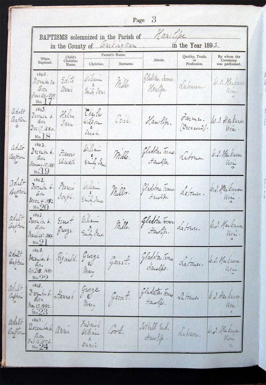 "Deceased" added after farmer; "Adult Baptism" in margin |