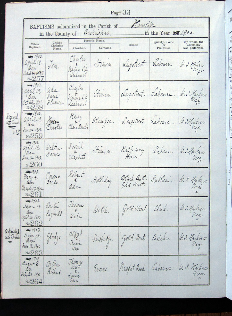Below is a transcription and image of page 33 of the Baptism register for 1893-1928 of St. James The Great, Hanslope