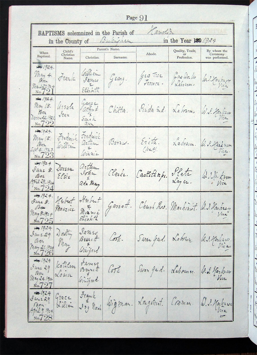 Below is a transcription and image of page 91 of the Baptism register for 1893-1928 of St. James The Great, Hanslope |