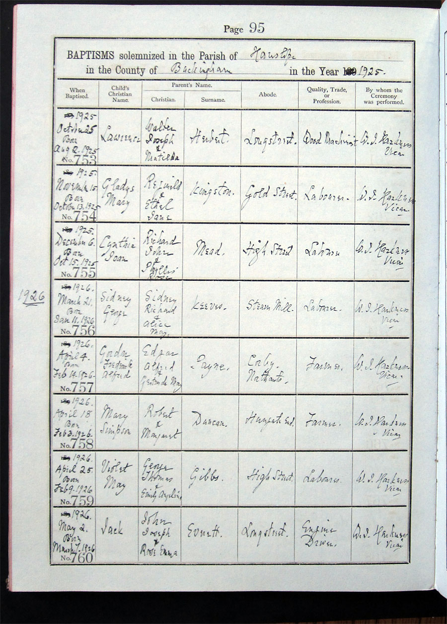 Below is a transcription and image of page 95 of the Baptism register for 1893-1928 of St. James The Great, Hanslope