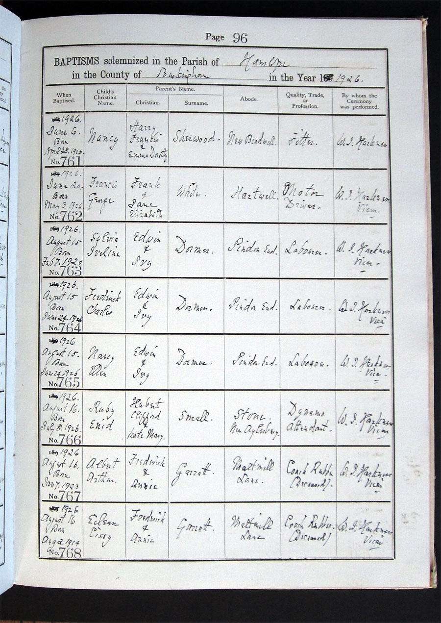 | Below is a transcription and image of page 96 of the Baptism register for 1893-1928 of St. James The Great, Hanslope |