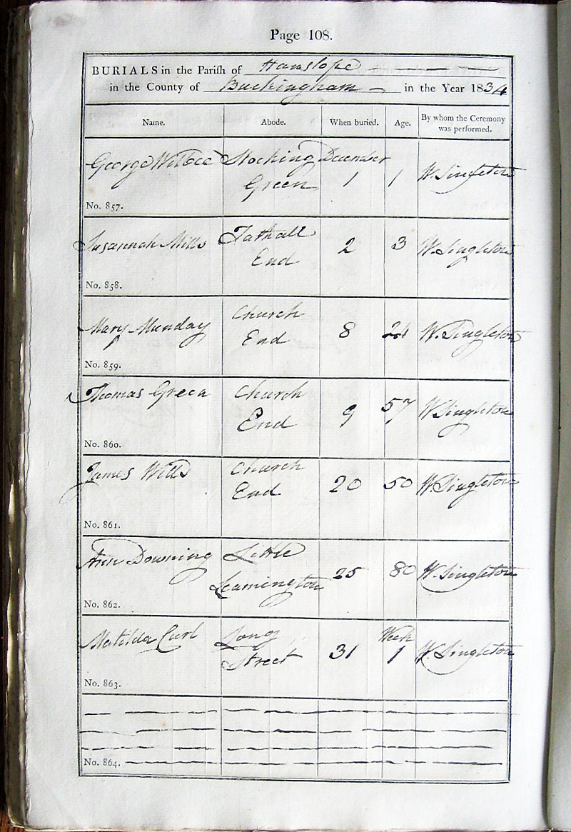 Below is a transcription and image of page 108 of the Burial register for 1813-1852 of St. James The Great, Hanslope |