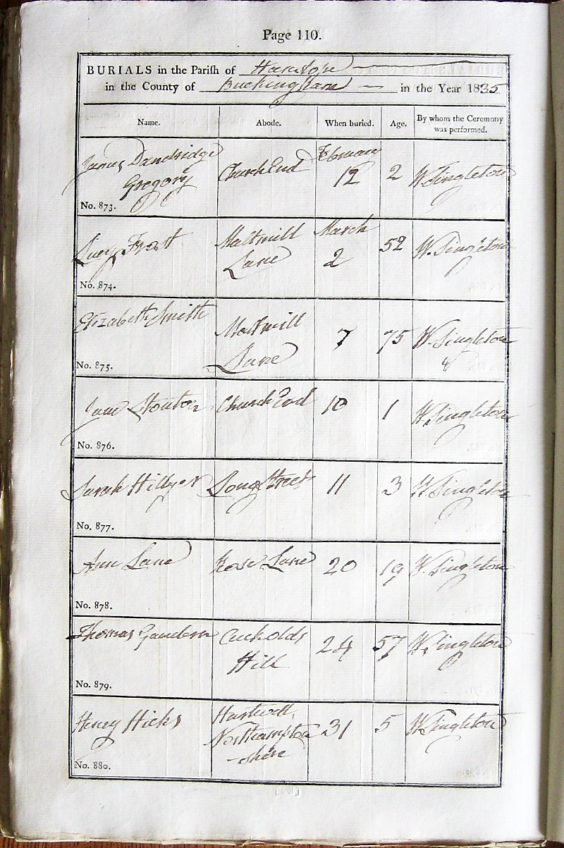 Below is a transcription and image of page 110 of the Burial register for 1813-1852 of St. James The Great, Hanslope |