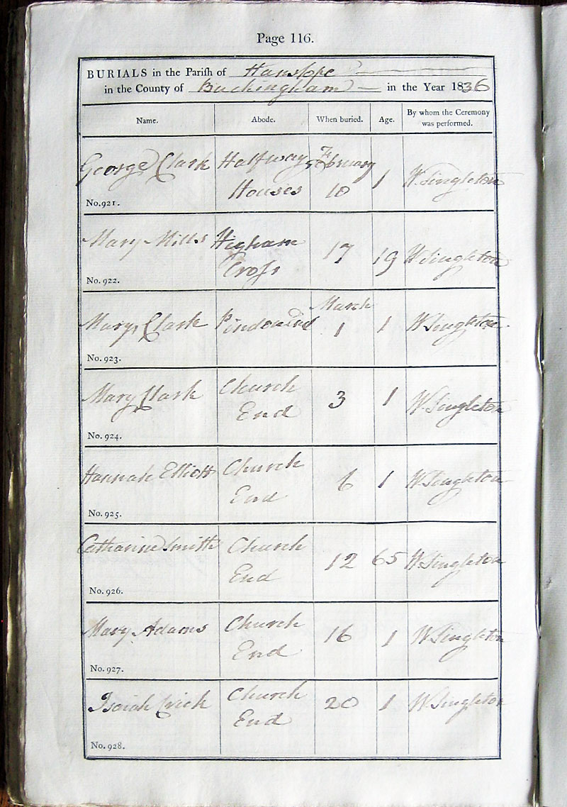 B U R I A L S in the Parish of .. Hanslope .. in the