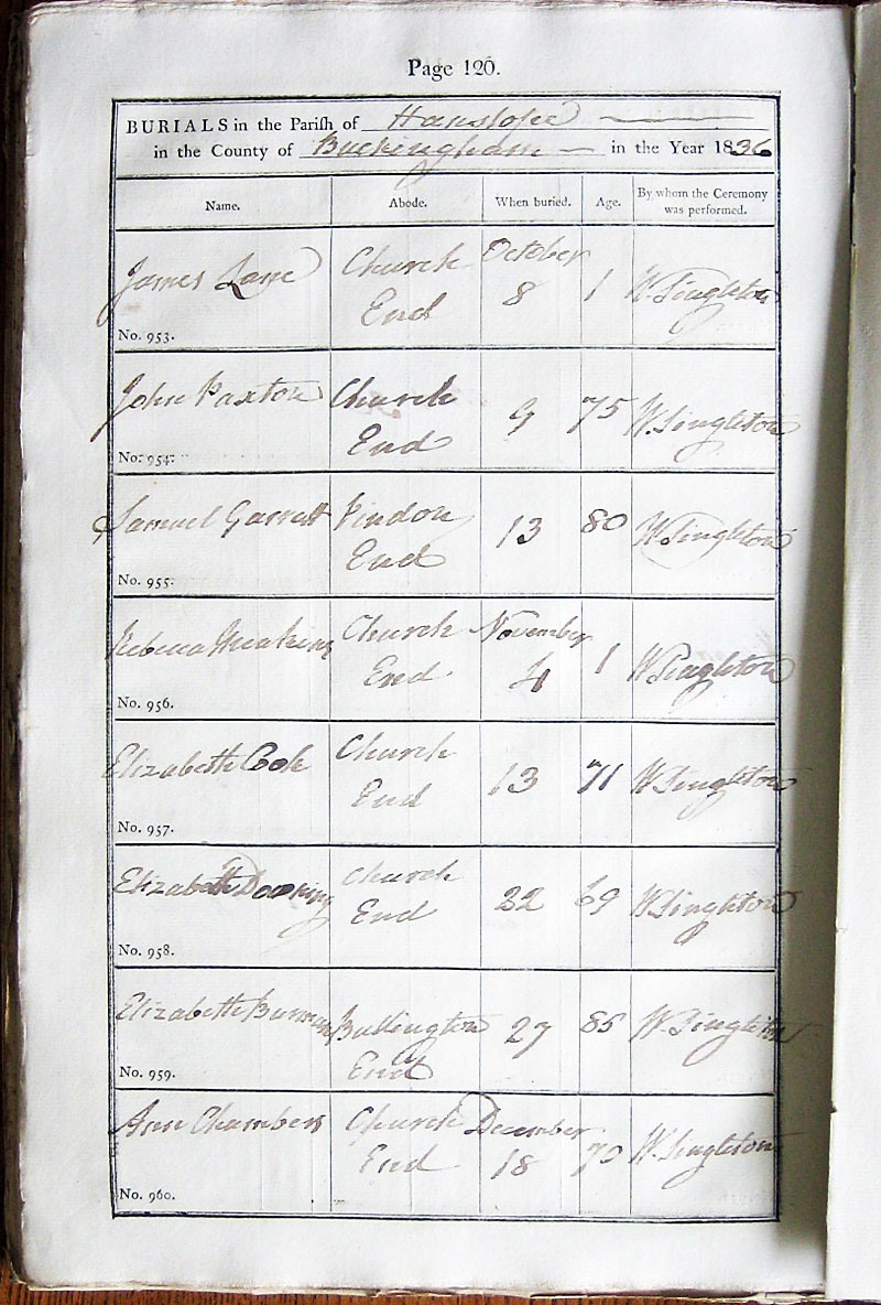 Below is a transcription and image of page 120 of the Burial register for 1813-1852 of St. James The Great, Hanslope |