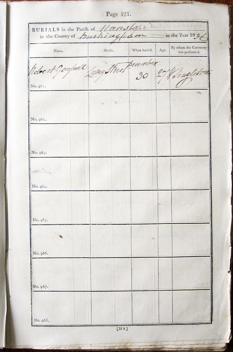 Below is a transcription and image of page 121 of the Burial register for 1813-1852 of St. James The Great, Hanslope |