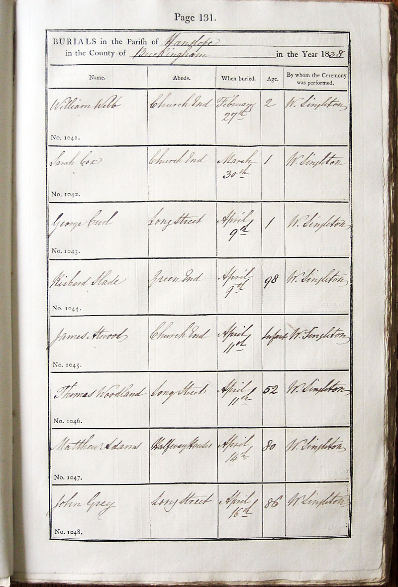 Name Abode When buried Age By whom the Ceremony