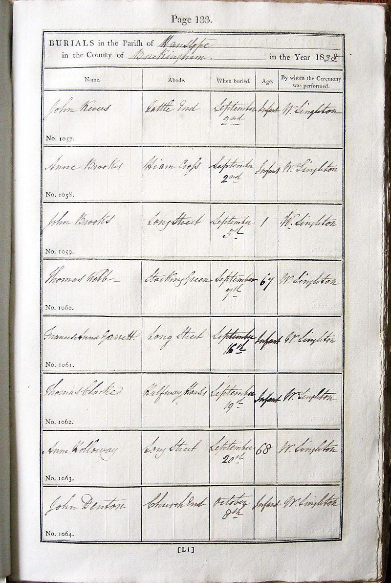 Name Abode When buried Age By whom the Ceremony