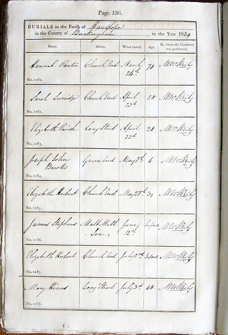 Below is a transcription and image of page 136 of the Burial register for 1813-1852 of St. James The Great, Hanslope |