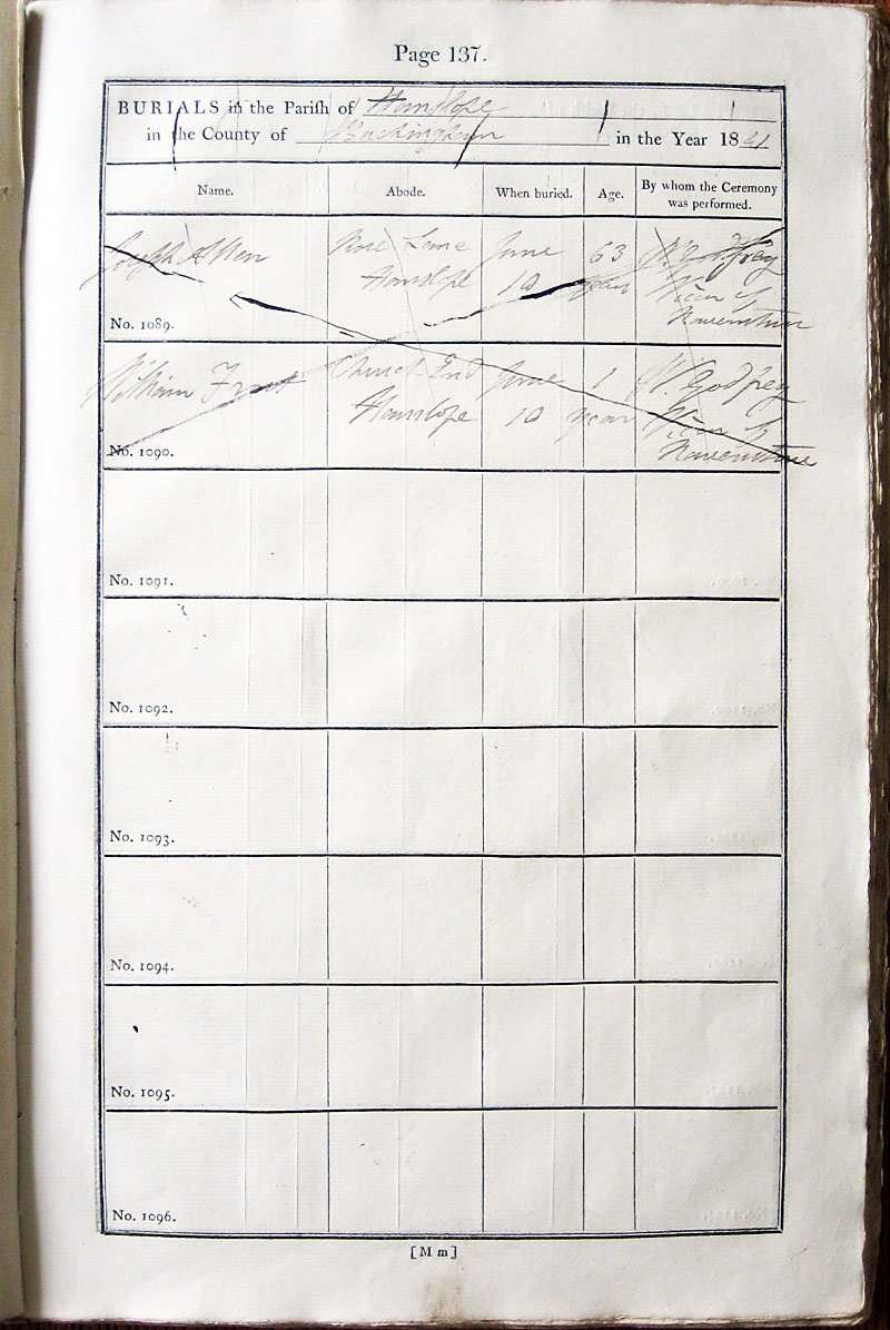Below is a transcription and image of page 137 of the Burial register for 1813-1852 of St. James The Great, Hanslope |