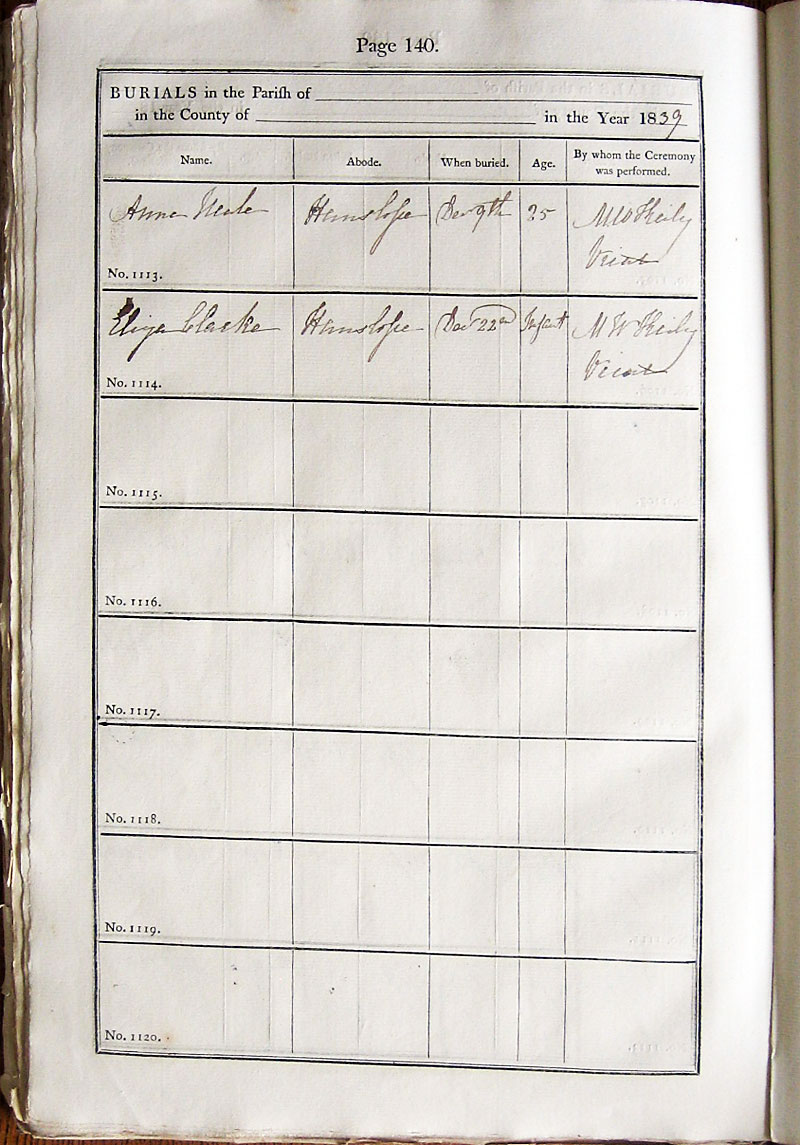 Below is a transcription and image of page 140 of the Burial register for 1813-1852 of St. James The Great, Hanslope