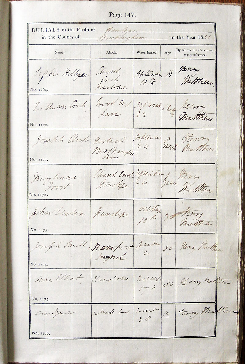 Below is a transcription and image of page 147 of the Burial register for 1813-1852 of St. James The Great, Hanslope |