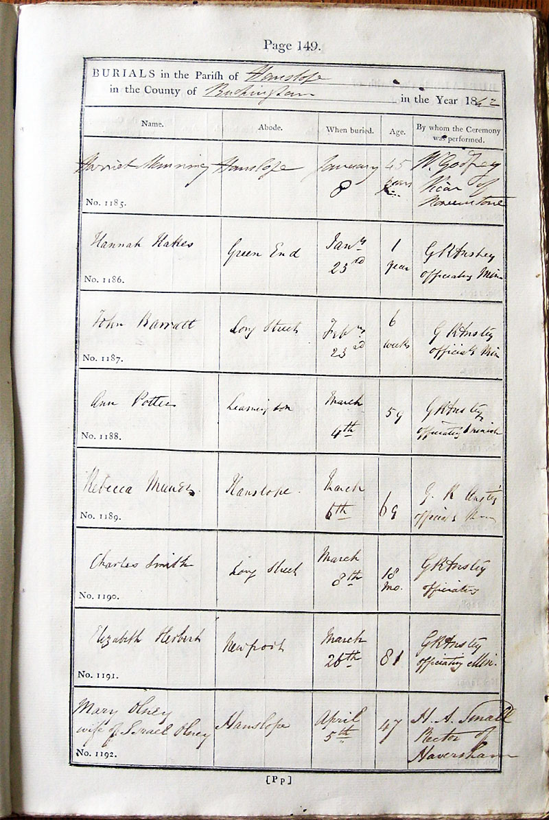 B U R I A L S in the Parish of .. Hanslope .. in the