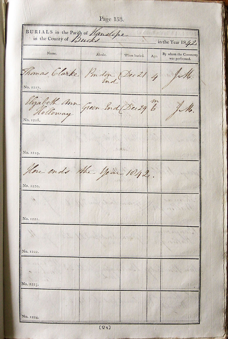 Below is a transcription and image of page 153 of the Burial register for 1813-1852 of St. James The Great, Hanslope |