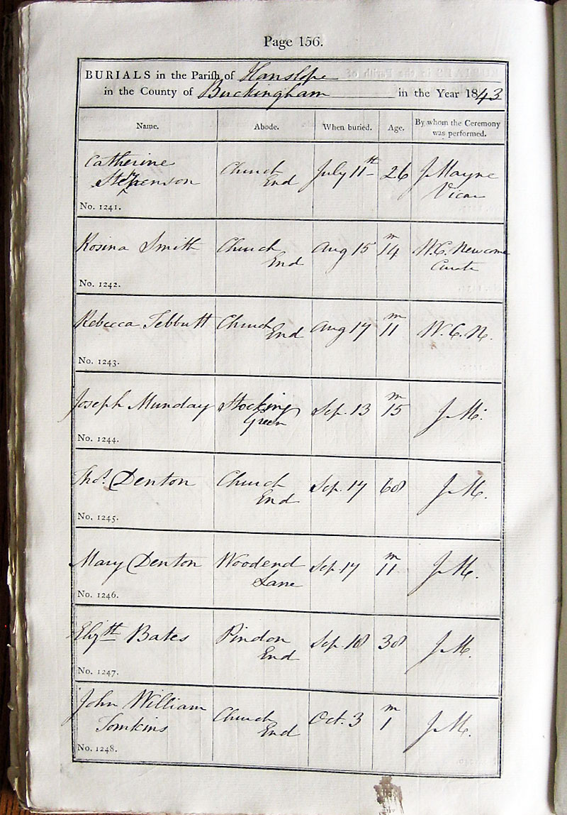 Below is a transcription and image of page 156 of the Burial register for 1813-1852 of St. James The Great, Hanslope |