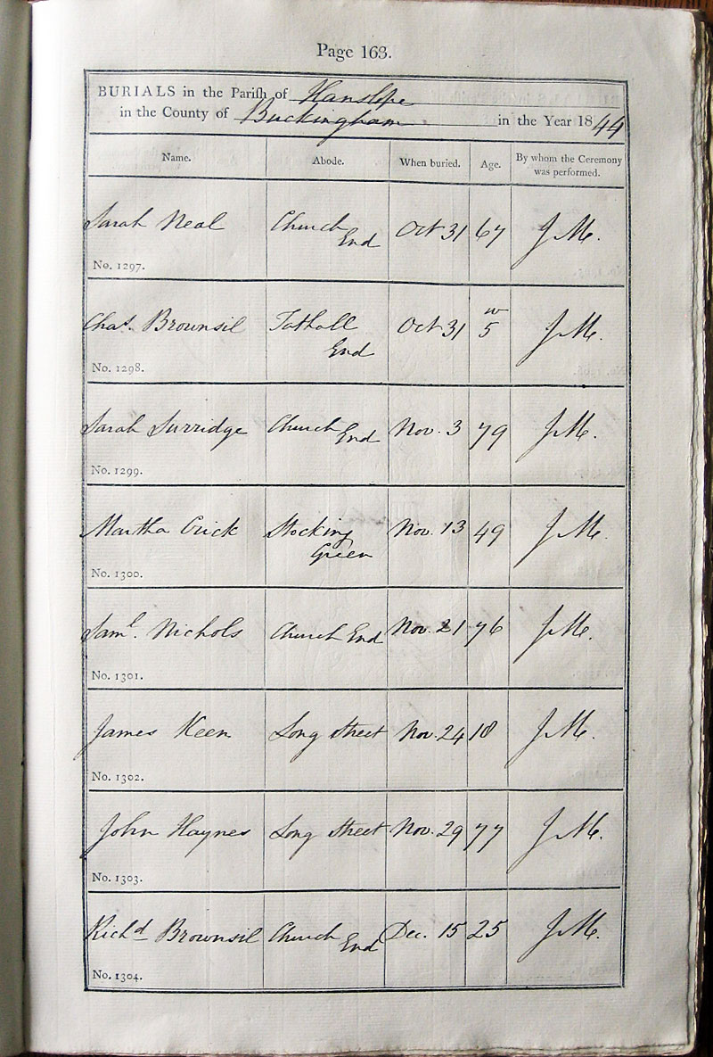 Below is a transcription and image of page 163 of the Burial register for 1813-1852 of St. James The Great, Hanslope |