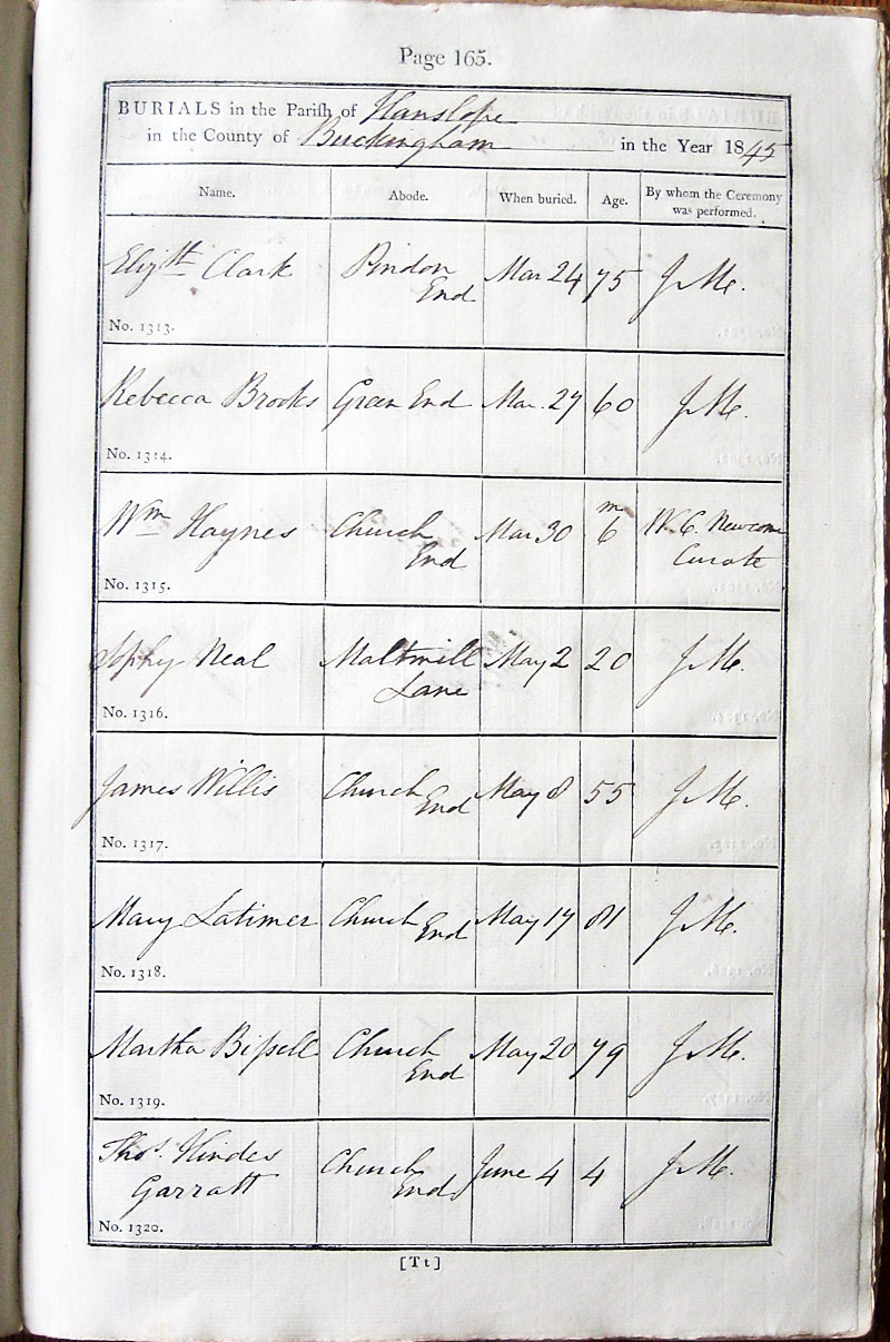 Below is a transcription and image of page 165 of the Burial register for 1813-1852 of St. James The Great, Hanslope |