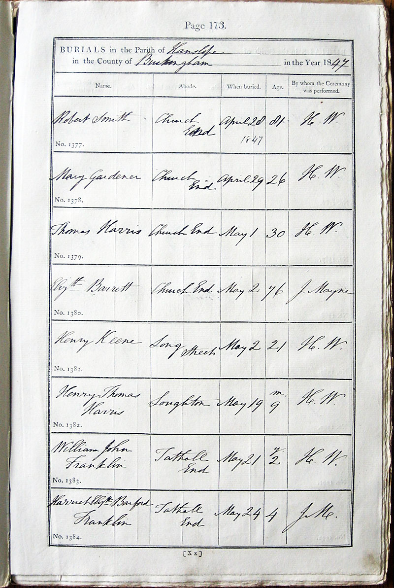 B U R I A L S in the Parish of .. Hanslope .. in the