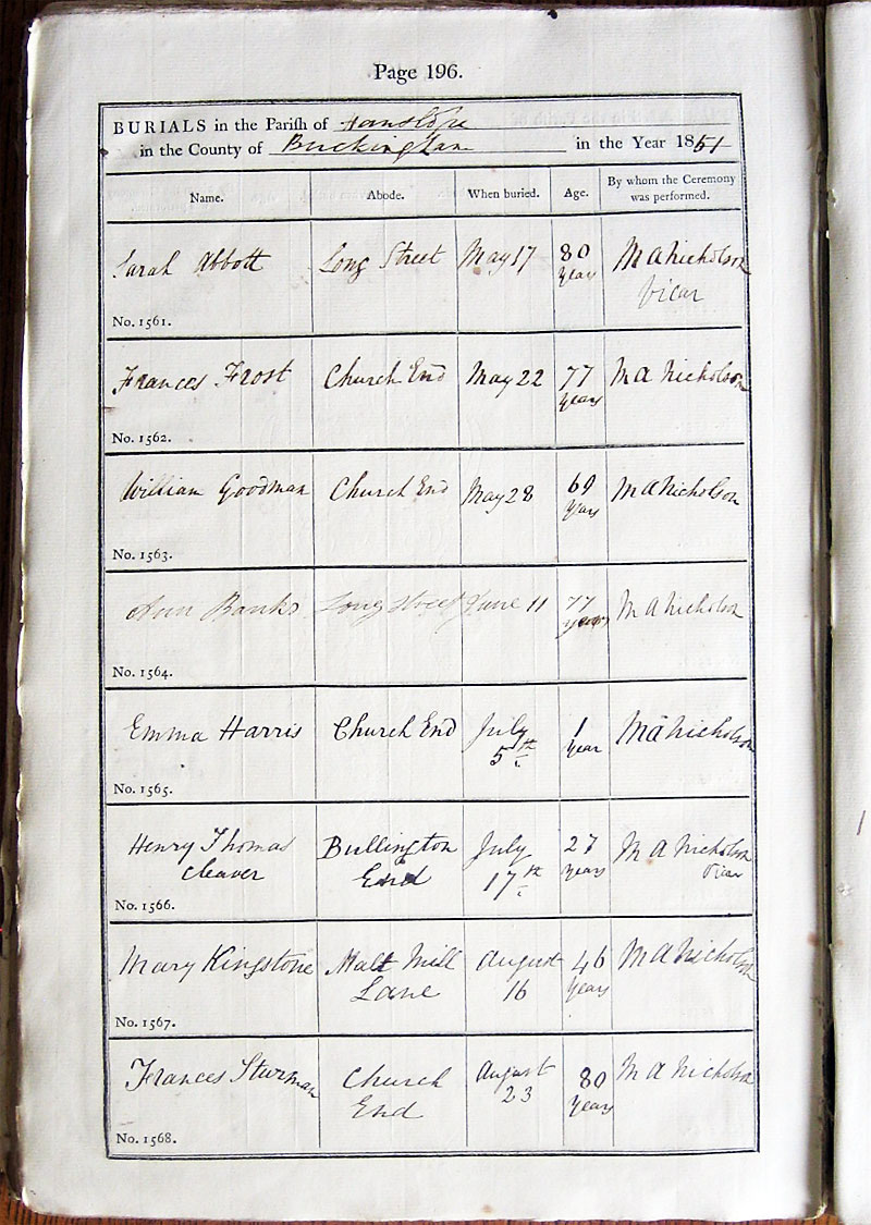 Below is a transcription and image of page 196 of the Burial register for 1813-1852 of St. James The Great, Hanslope  |