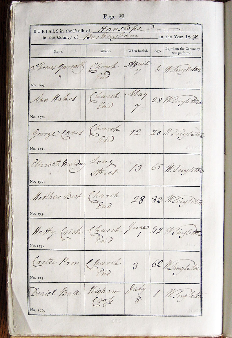 Below is a transcription and image of page 22 of the Burial register for 1813-1852 of St. James The Great, Hanslope |