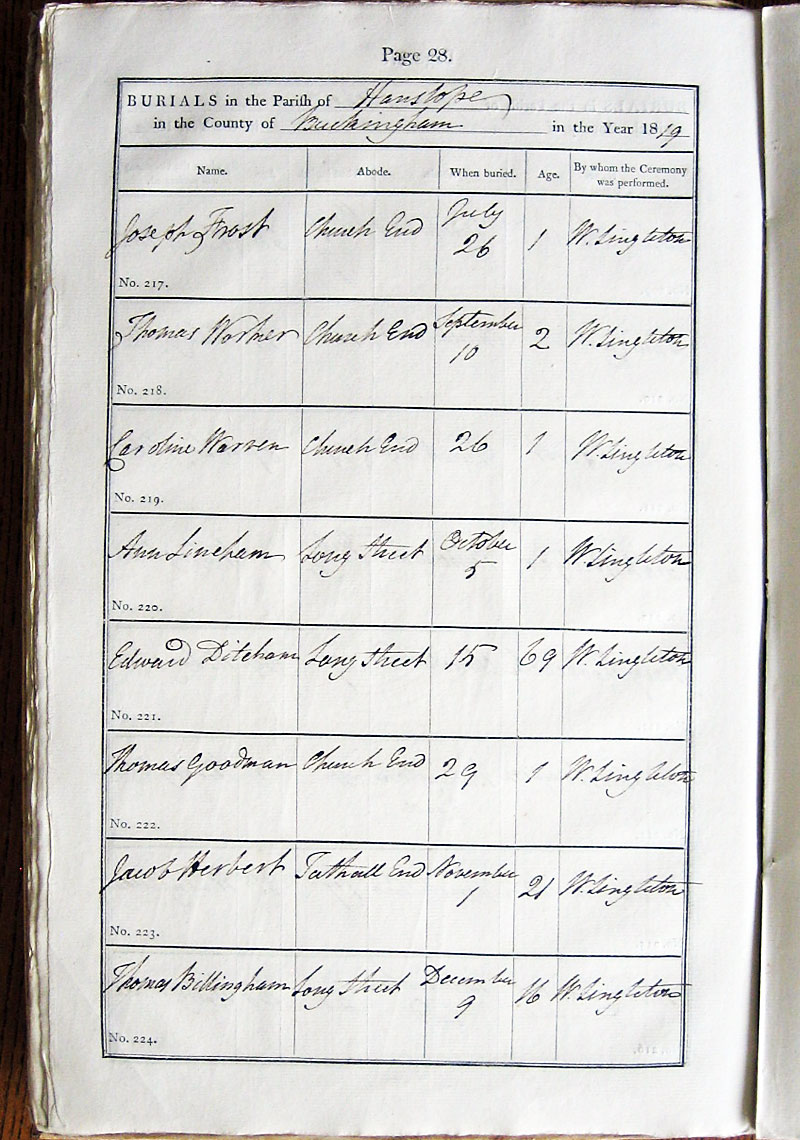 B U R I A L S in the Parish of .. Hanslope .. in the
