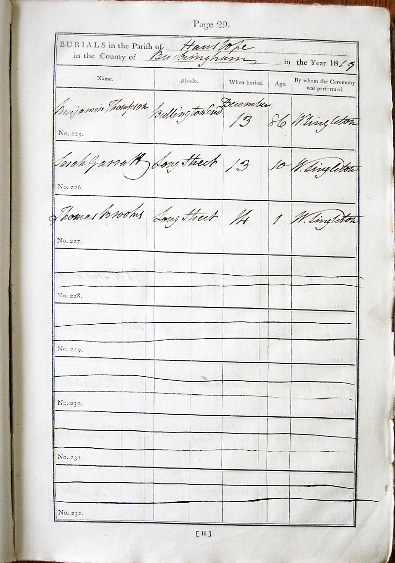 Below is a transcription and image of page 29 of the Burial register for 1813-1852 of St. James The Great, Hanslope |