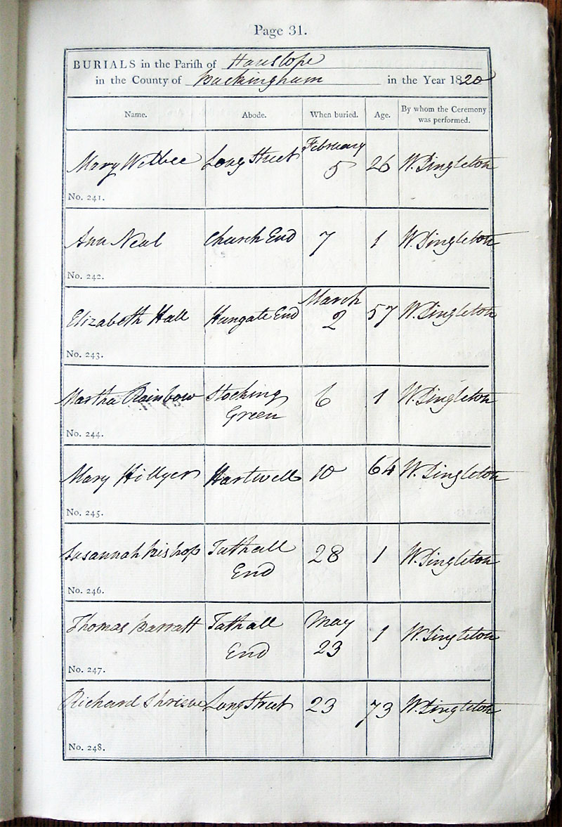 Below is a transcription and image of page 31 of the Burial register for 1813-1852 of St. James The Great, Hanslope |