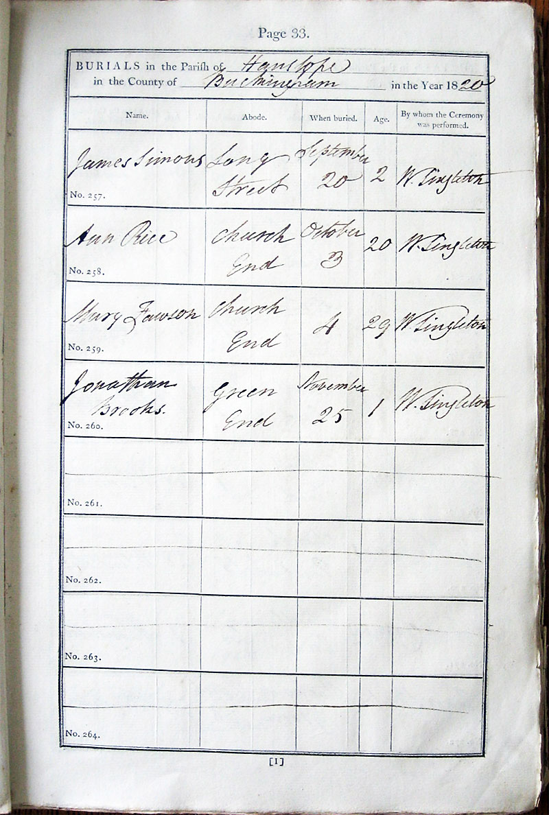 Below is a transcription and image of page 33 of the Burial register for 1813-1852 of St. James The Great, Hanslope |