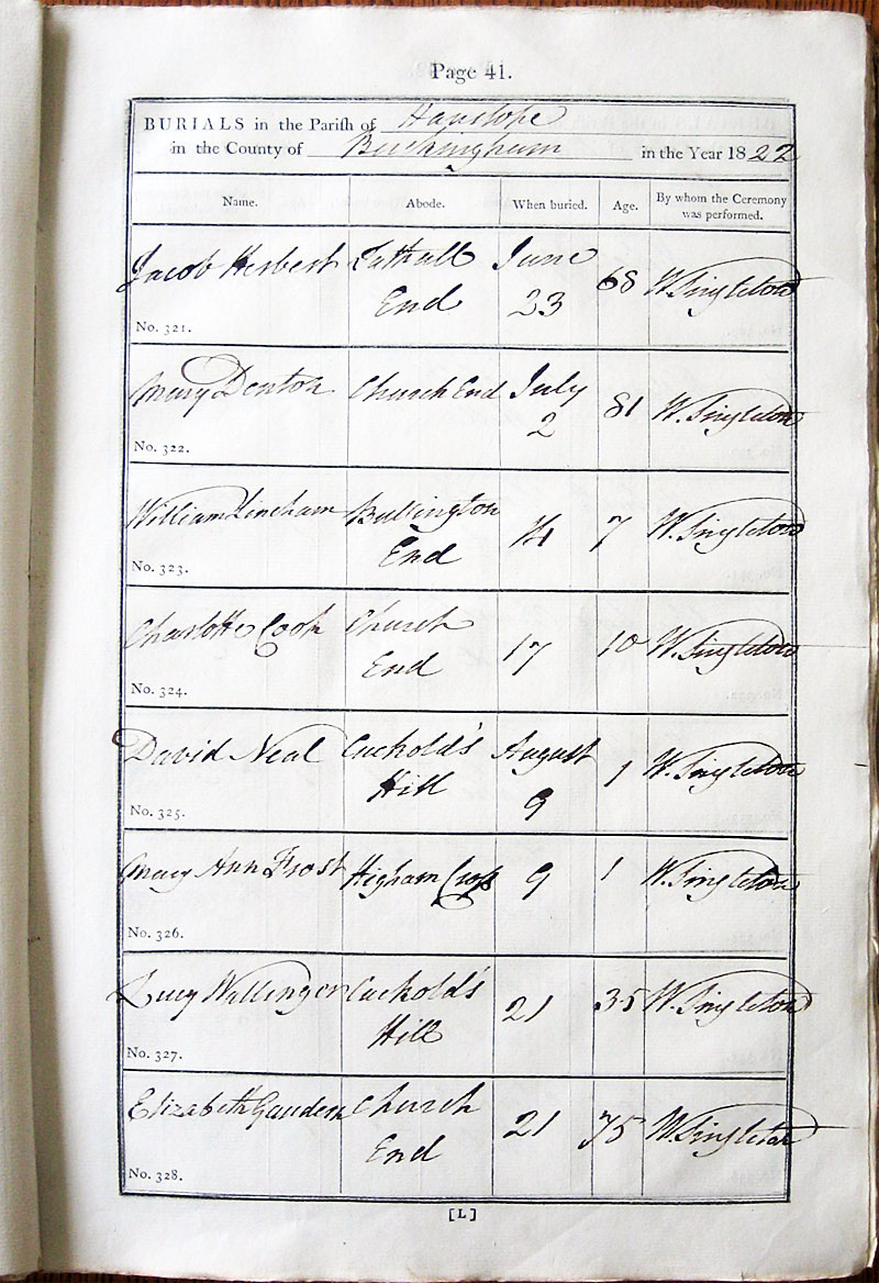 Below is a transcription and image of page 41 of the Burial register for 1813-1852 of St. James The Great, Hanslope |