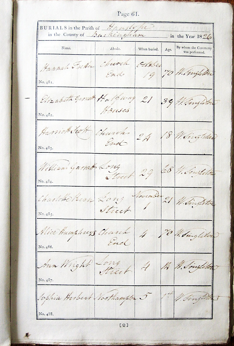 Below is a transcription and image of page 61 of the Burial register for 1813-1852 of St. James The Great, Hanslope |