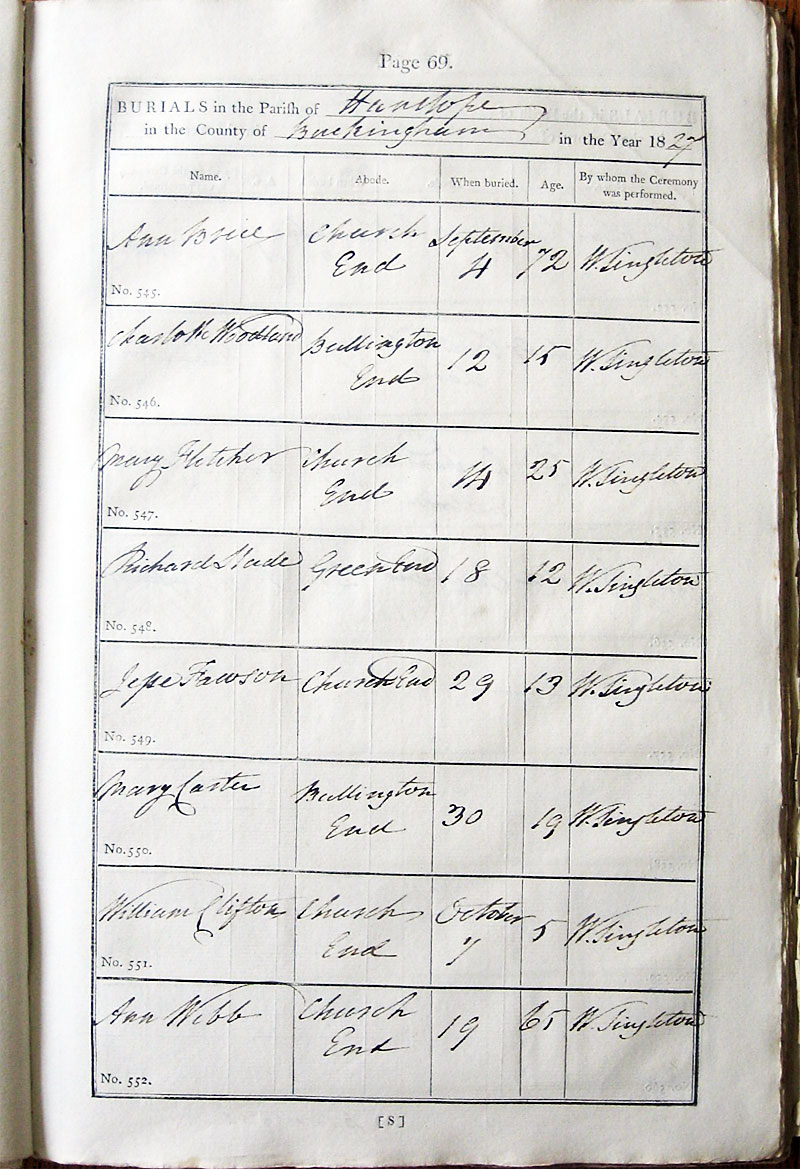 Name Abode When buried Age By whom the Ceremony