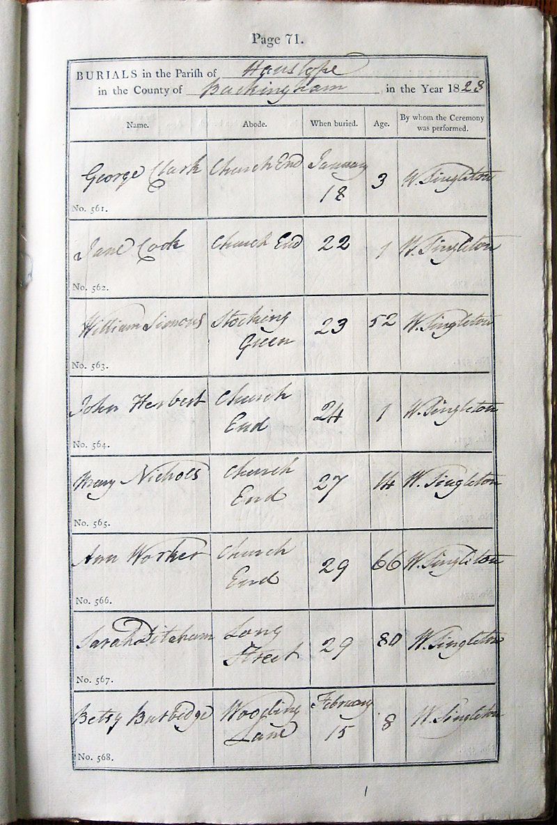 Below is a transcription and image of page 71 of the Burial register for 1813-1852 of St. James The Great, Hanslope |
