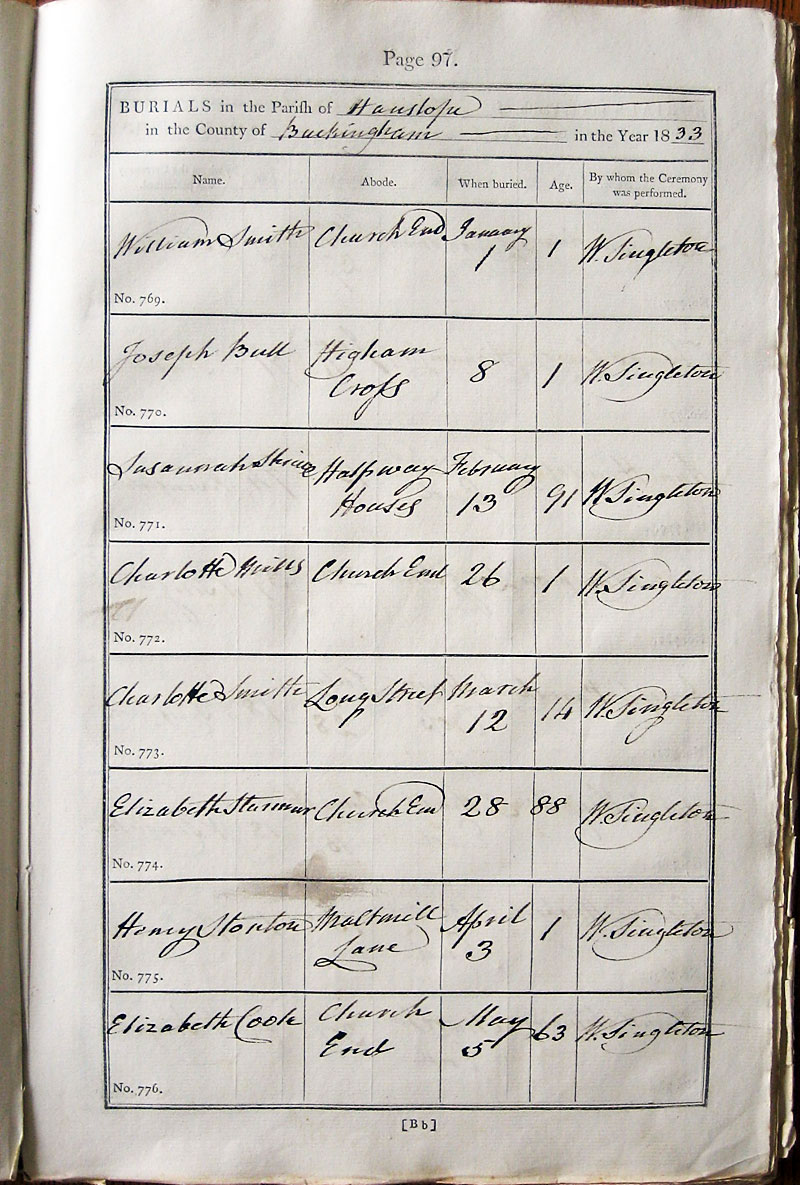 Below is a transcription and image of page 97 of the Burial register for 1813-1852 of St. James The Great, Hanslope |