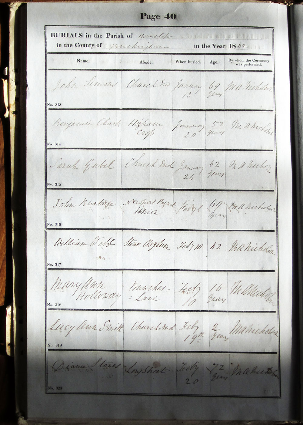 Below is a transcription and image of page 40 of the Burial register for 1853-1878 of St. James The Great, Hanslope |