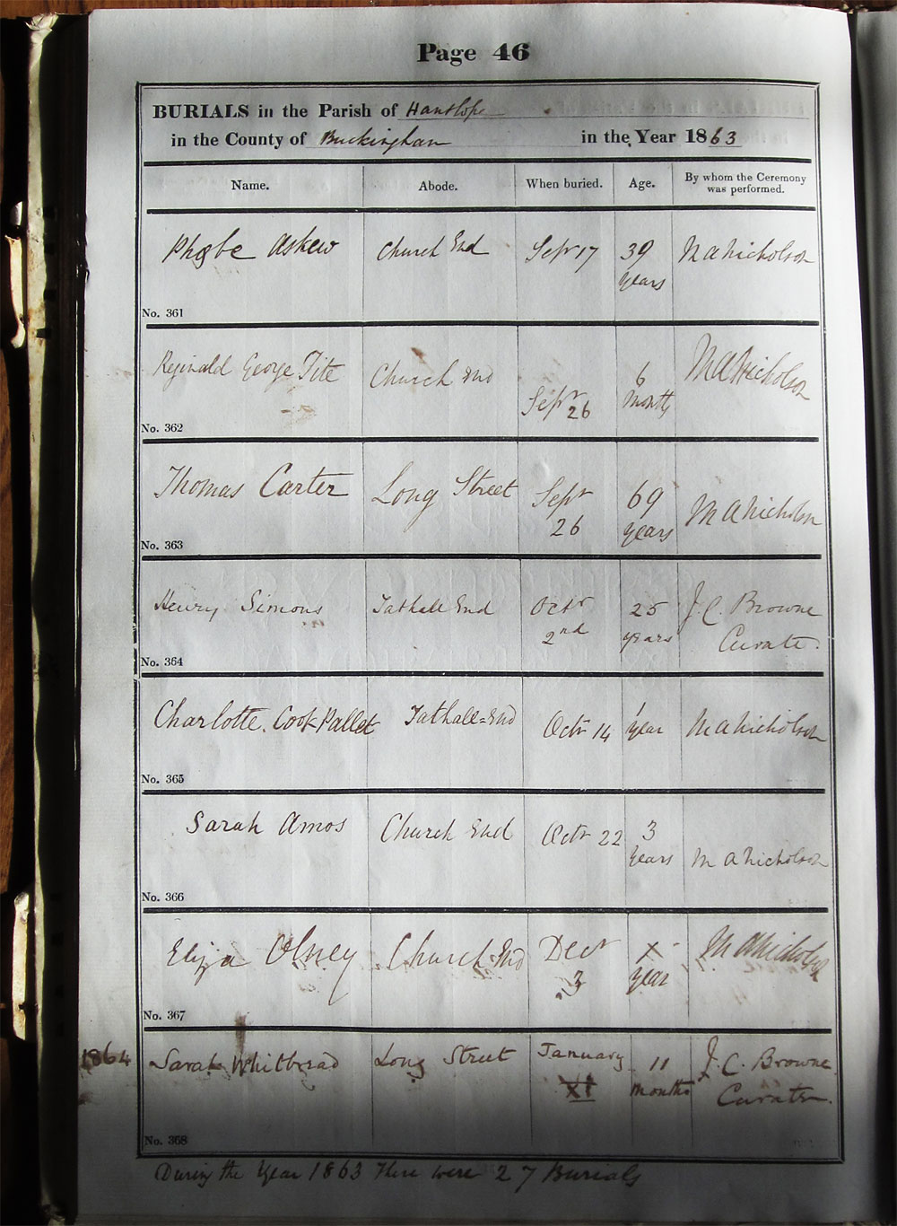 Below is a transcription and image of page 46 of the Burial register for 1853-1878 of St. James The Great, Hanslope |