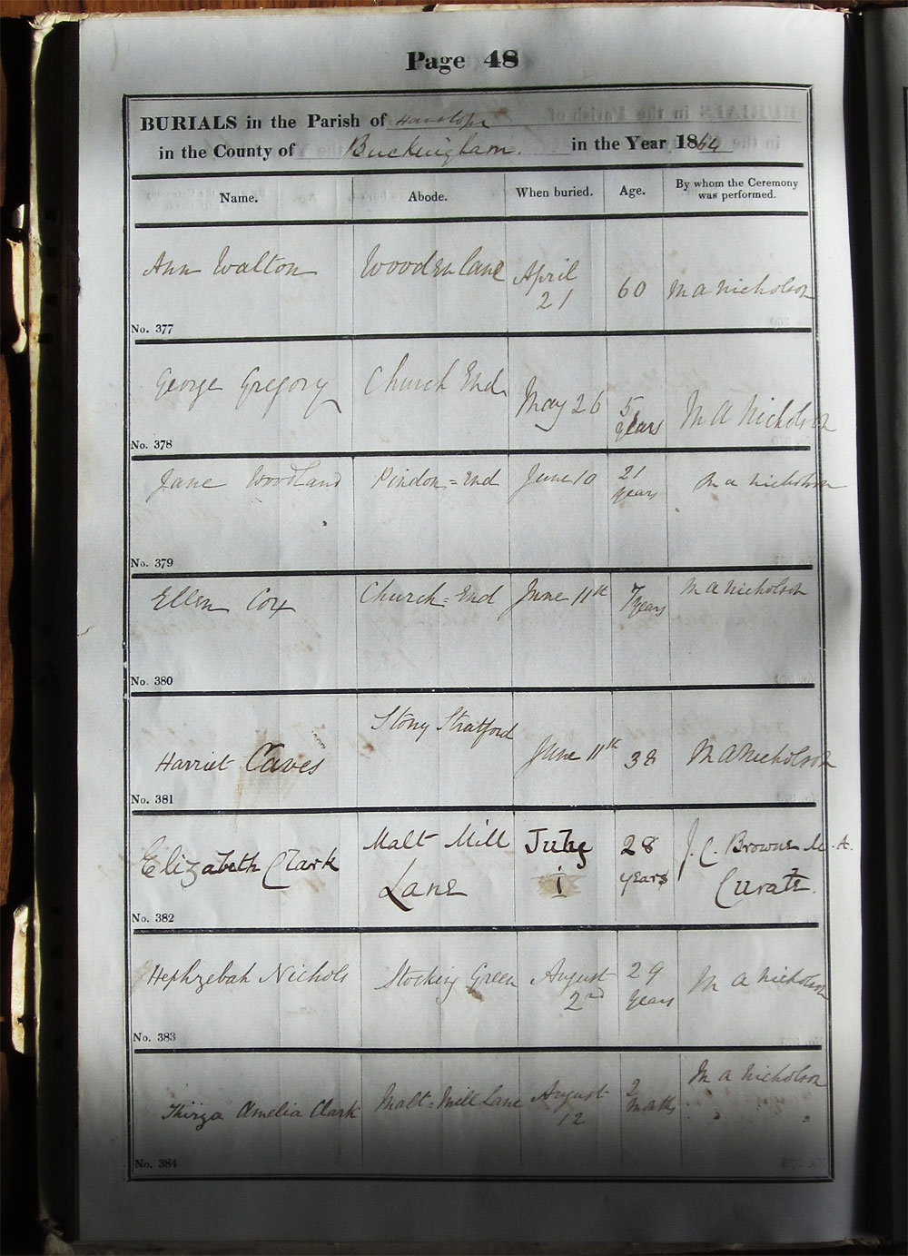 Below is a transcription and image of page 48 of the Burial register for 1853-1878 of St. James The Great, Hanslope |