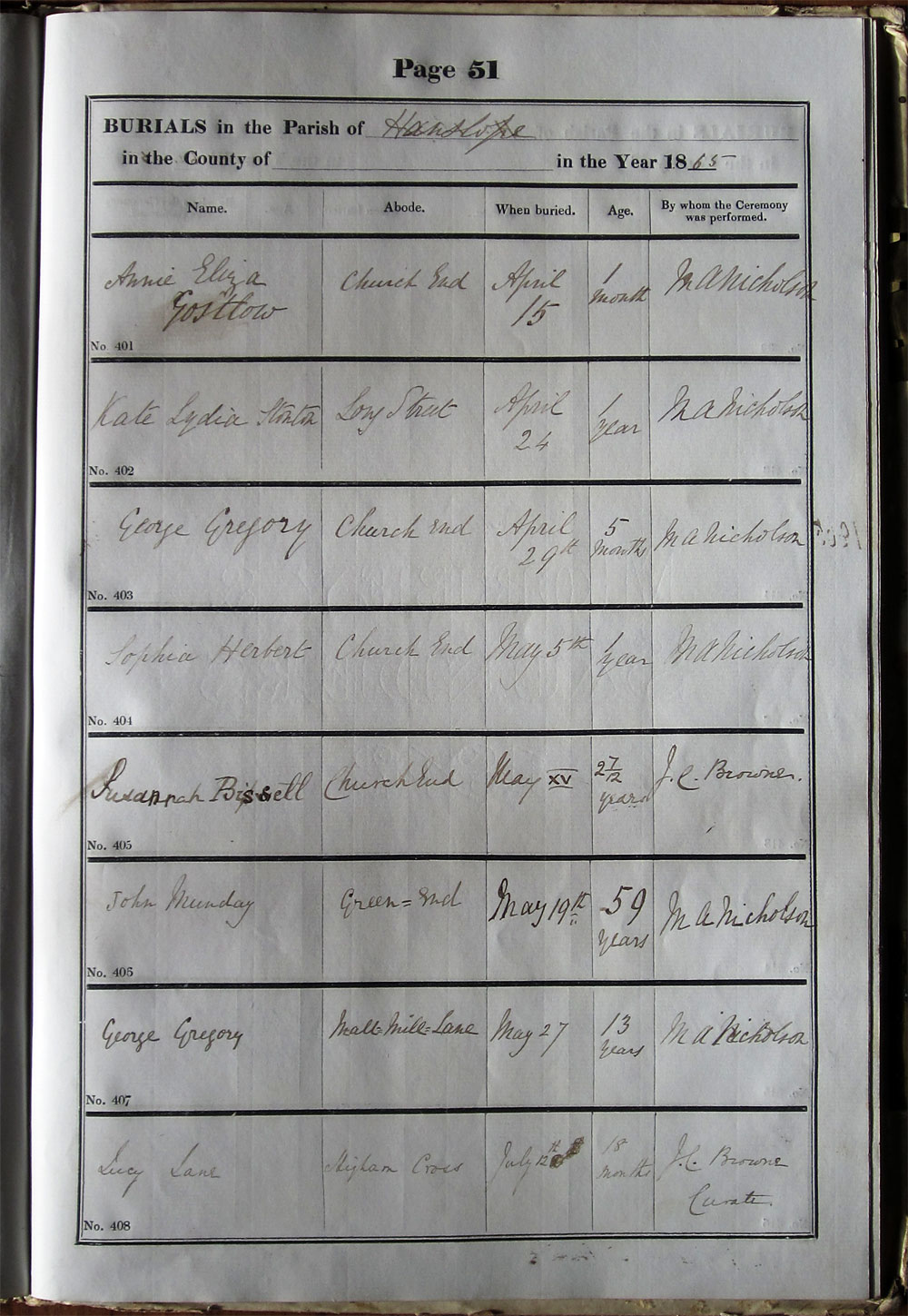 B U R I A L S in the Parish of .. Hanslope .. in the