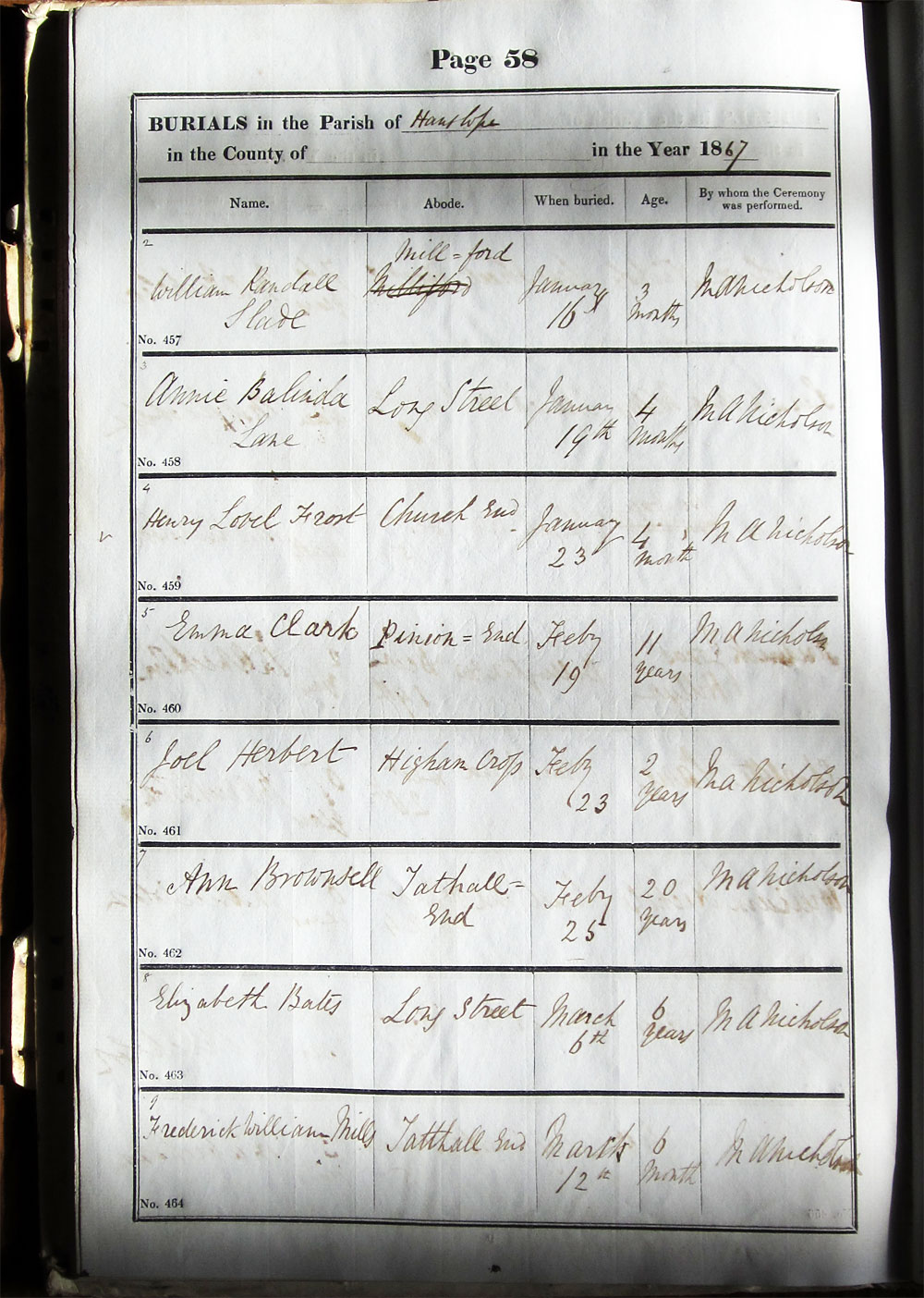 Below is a transcription and image of page 58 of the Burial register for 1853-1878 of St. James The Great, Hanslope |