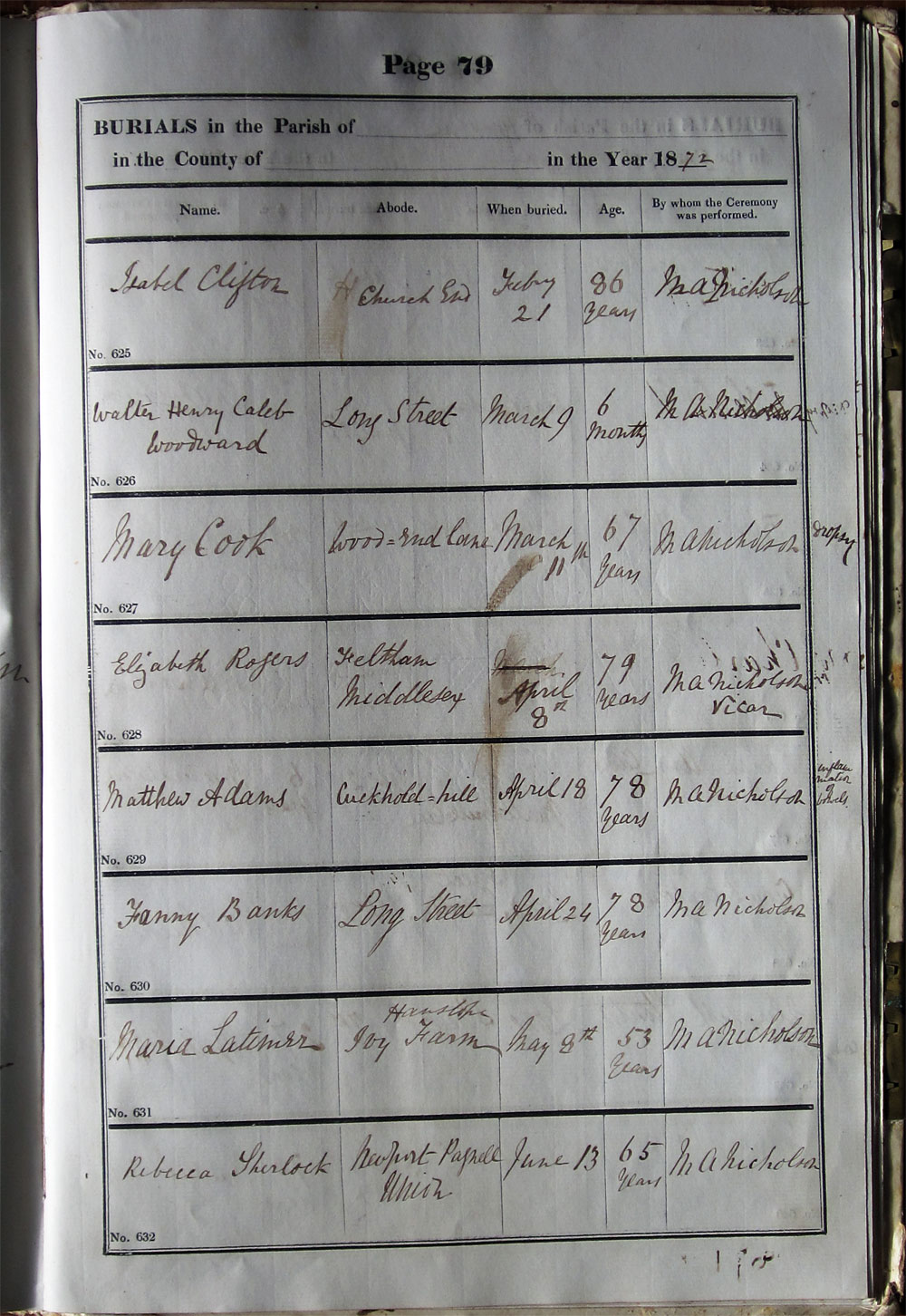 Below is a transcription and image of page 79 of the Burial register for 1853-1878 of St. James The Great, Hanslope |