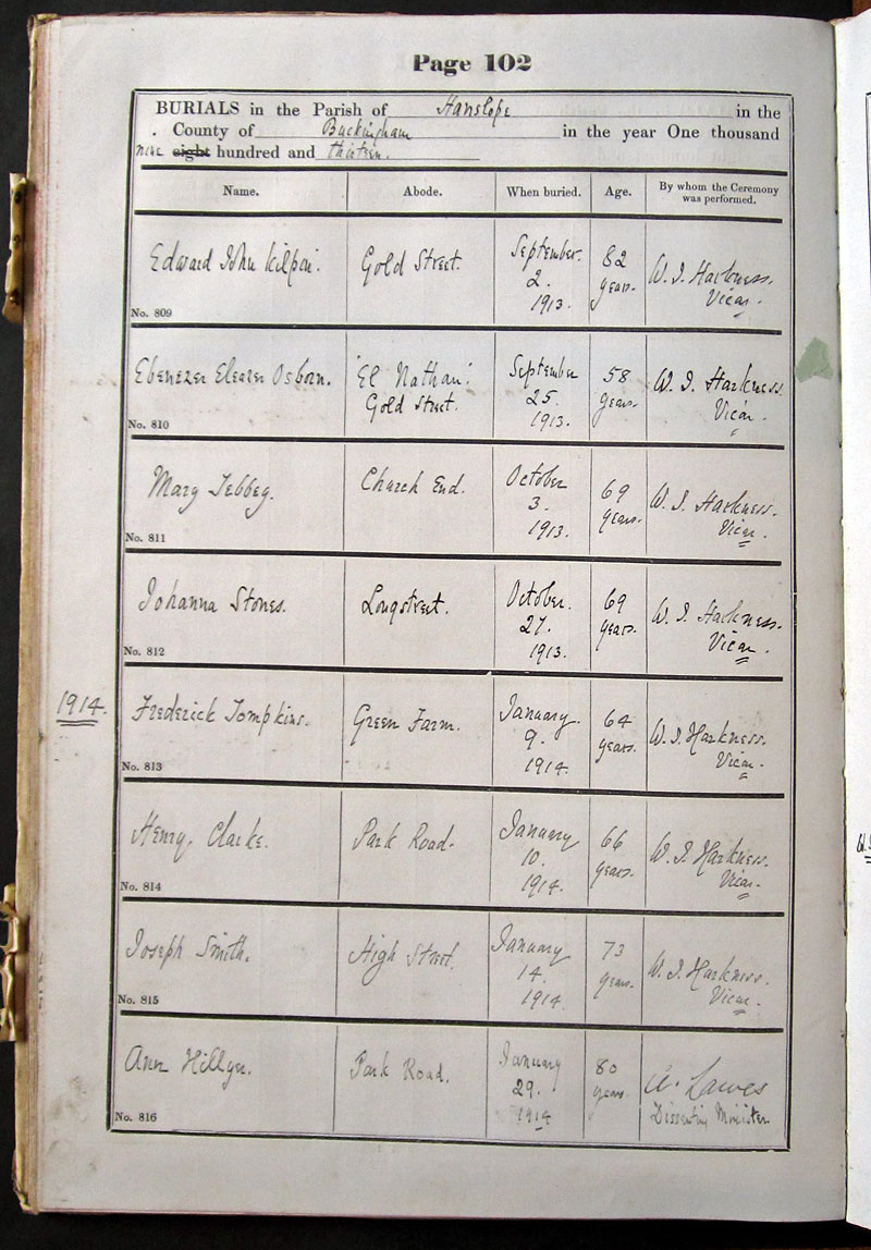 Below is a transcription and image of page 102 of the Burial register for 1878-1963 of St. James The Great, Hanslope |