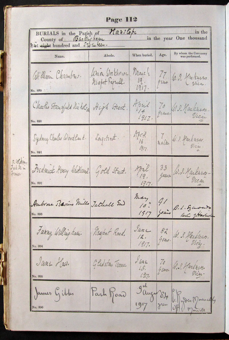 Name Abode When buried Age By whom the Ceremony