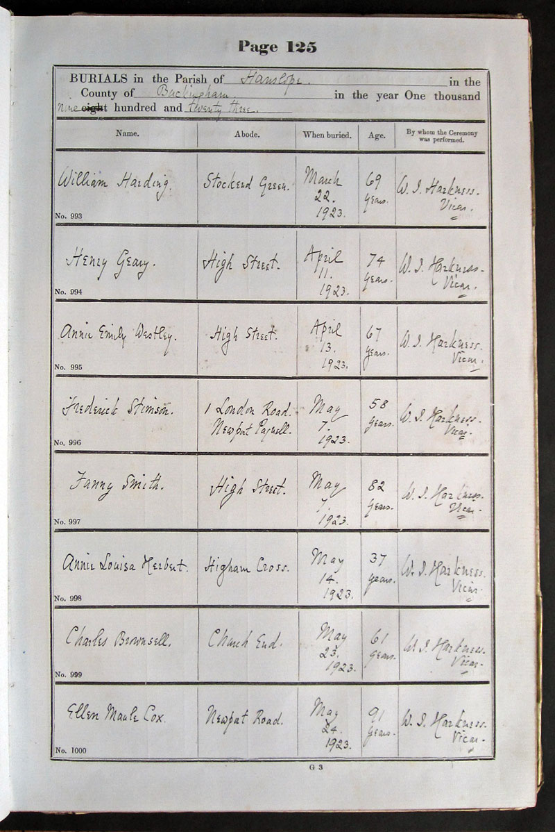 Name Abode When buried Age By whom the Ceremony