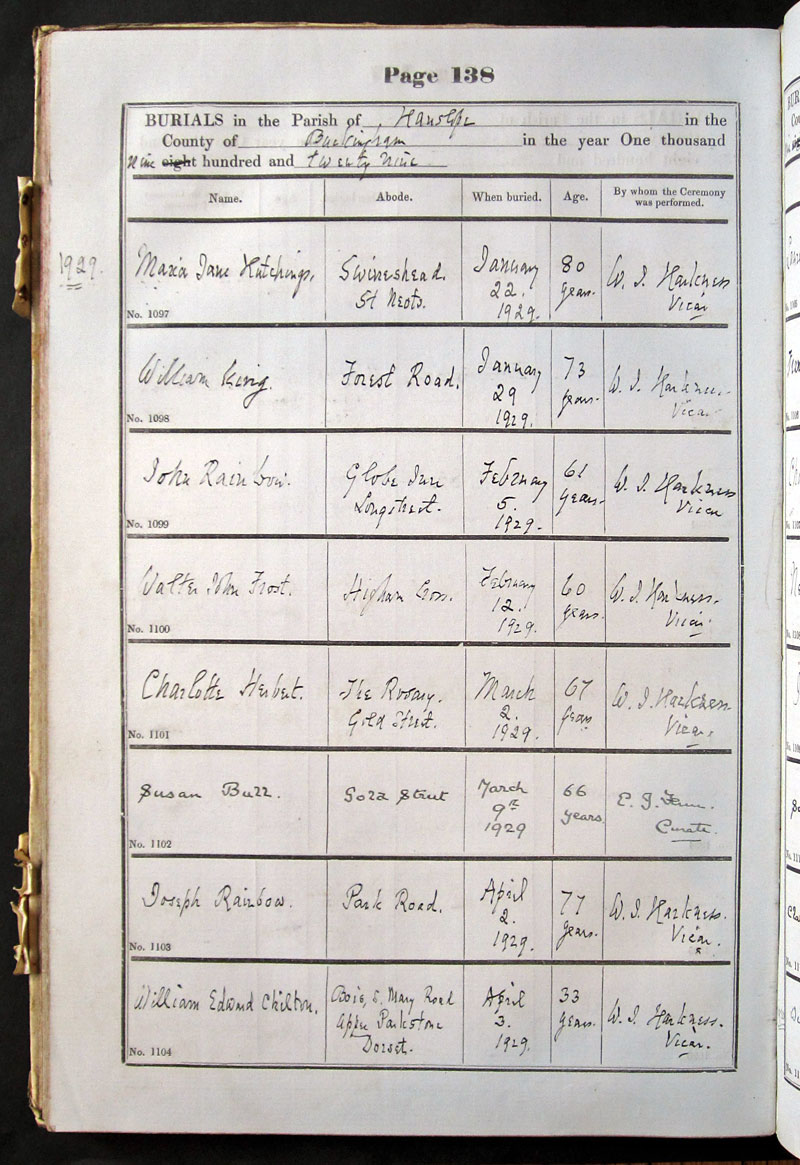 Below is a transcription and image of page 138 of the Burial register for 1878-1963 of St. James The Great, Hanslope |