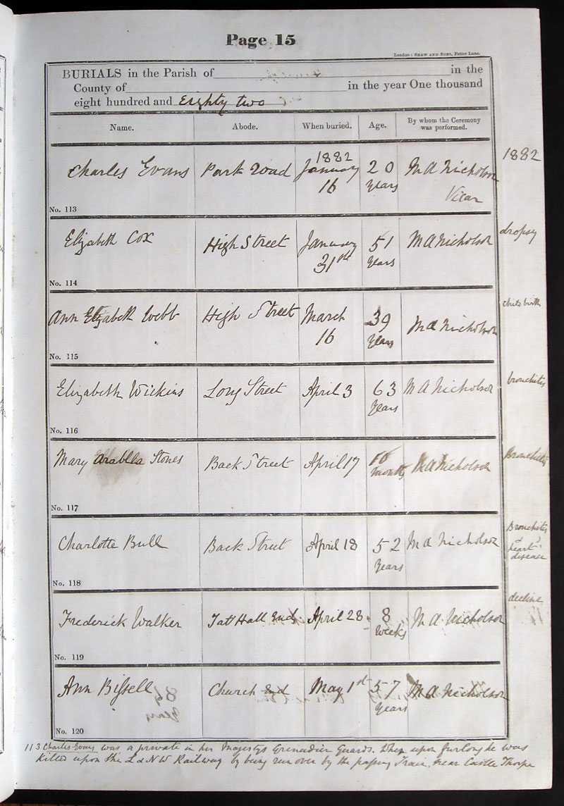 Name Abode When buried Age By whom the Ceremony