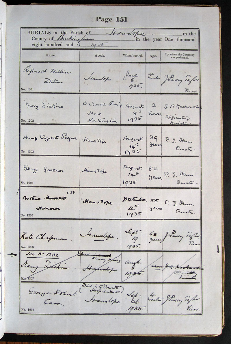Below is a transcription and image of page 151 of the Burial register for 1878-1963 of St. James The Great, Hanslope |