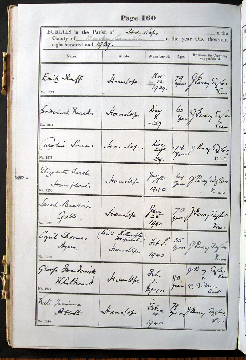 Below is a transcription and image of page 160 of the Burial register for 1878-1963 of St. James The Great, Hanslope |