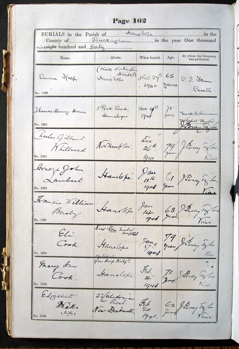 Below is a transcription and image of page 162 of the Burial register for 1878-1963 of St. James The Great, Hanslope