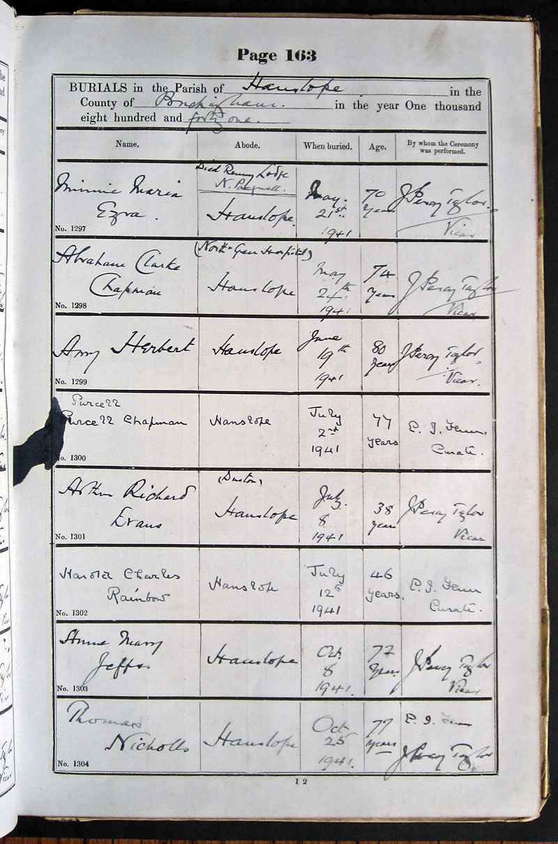Name Abode When buried Age By whom the Ceremony