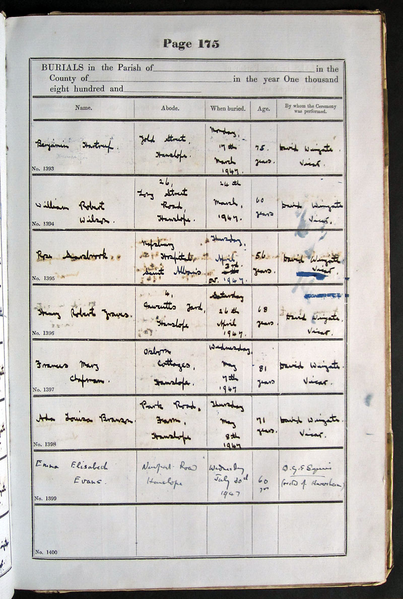 Name Abode When buried Age By whom the Ceremony