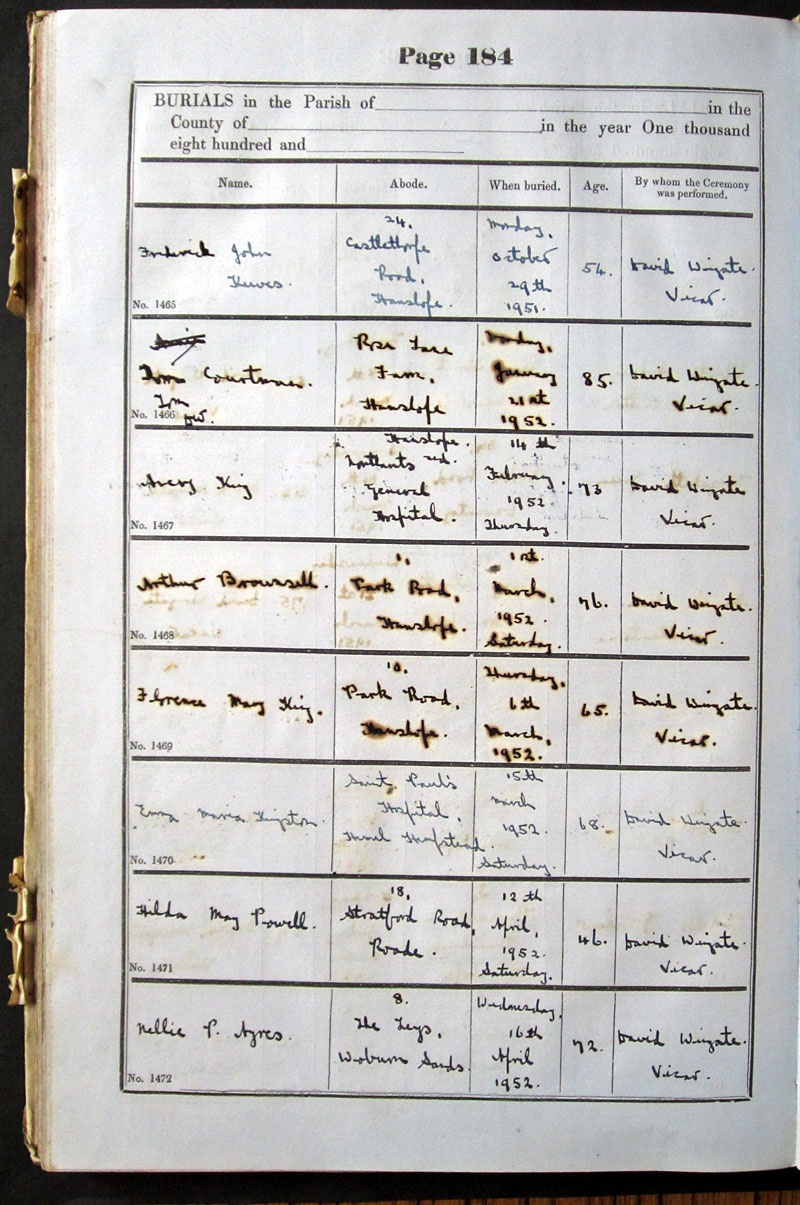 B U R I A L S in the Parish of .. Hanslope ..